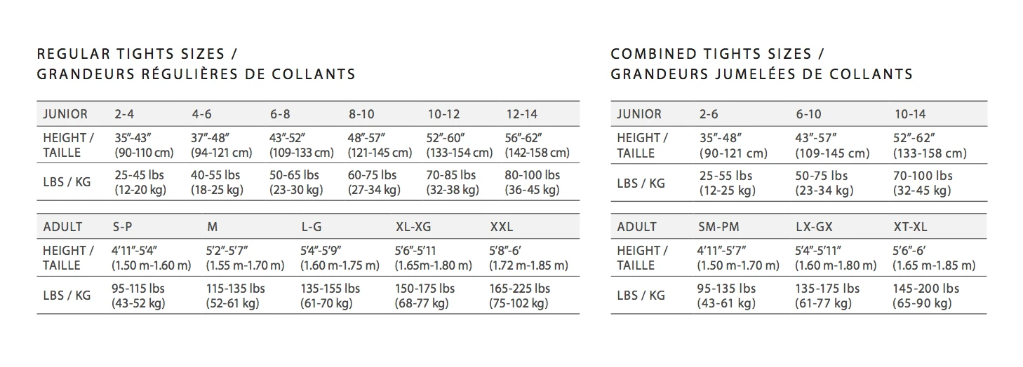 | Size | 6-8 (94cm – 121cm), 8-10 (109cm – 133cm), 10-12 (133cm – 154cm), 12-14 (142cm – 158cm), S-P (150cm – 160cm), M (155cm – 170cm), L-G (160cm – 175cm), XL-XG (165cm – 180cm) |